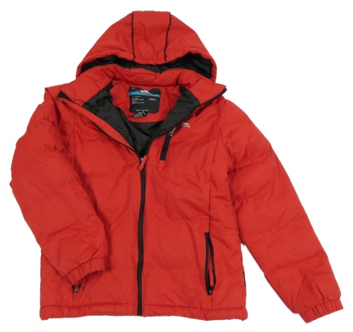 • Červená prošívaná šusťáková funkční zimní bunda s odepínací kapucí TRESPASS