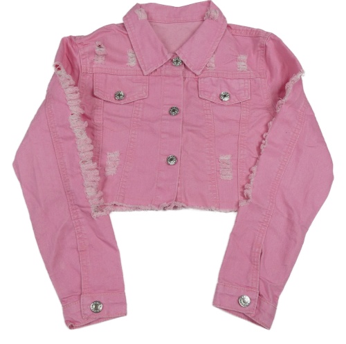 Růžová riflová crop bunda s prošoupáním