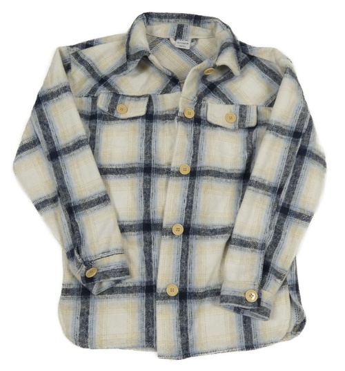 Bílo-béžovo-modro-tmavomodrá kostkovaná vlněná košilová bunda Y.F.K.