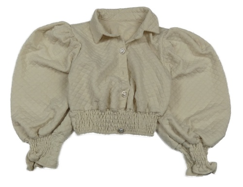 Smetanová vzorovaná crop lehká bunda s nařasenými rukávy