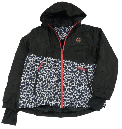 Černo-šedo-bílá šusťáková zimní lyžařská bunda s nášivkou a vzorem a kapucí crivit