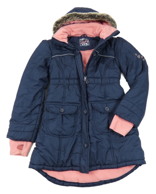 Tmavomodrý šusťákový zimní kabát s kapucí s kožešinou Y.F.K.