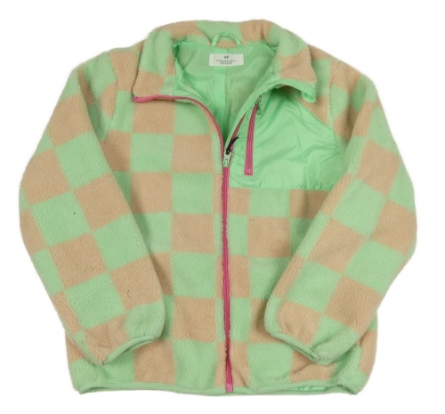 Béžovo-zelenkavá kostkovaná huňatá podšitá bunda H&M