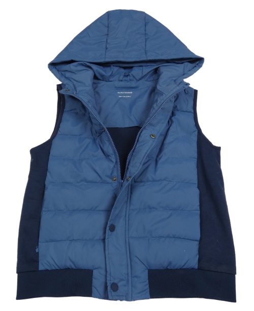 Modro-tmavomodrá prošívaná šusťákovo/tepláková zateplená vesta s kapucí NUKUTAVAKE