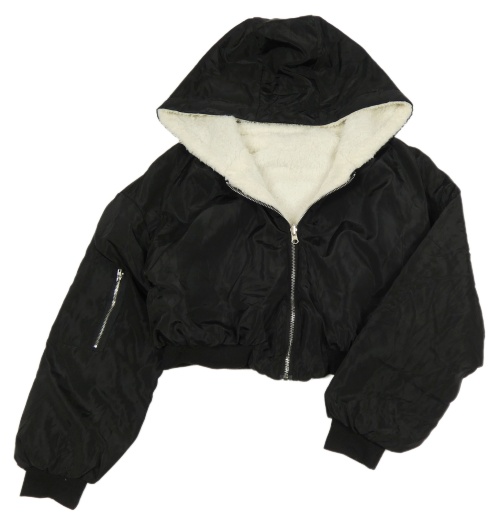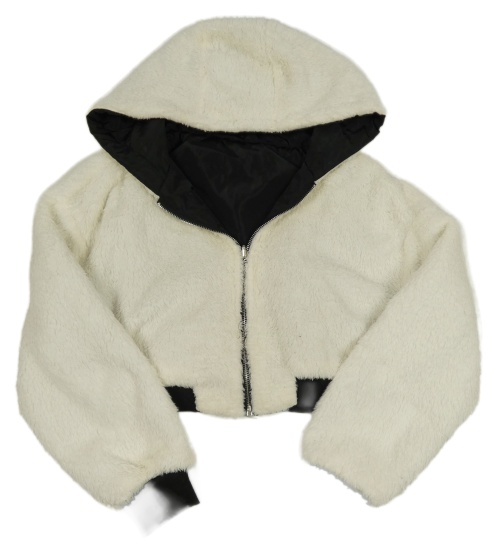 Smetanová kožešinová zateplená oboustranná crop bunda s kapucí