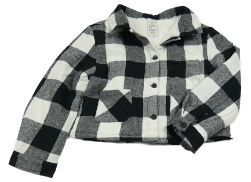 Černo-bílá kostkovaná zateplená crop košilová bunda