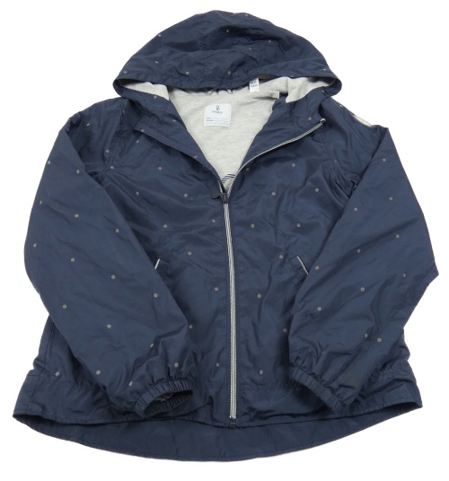 Tmavomodrá puntíkatá šusťáková jarní bunda s kapucí Okaidi