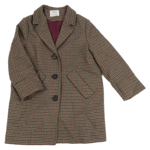 Béžovo-vínovo-černý kostkovaný vzorovaný vlněný zateplený kabát ZARA