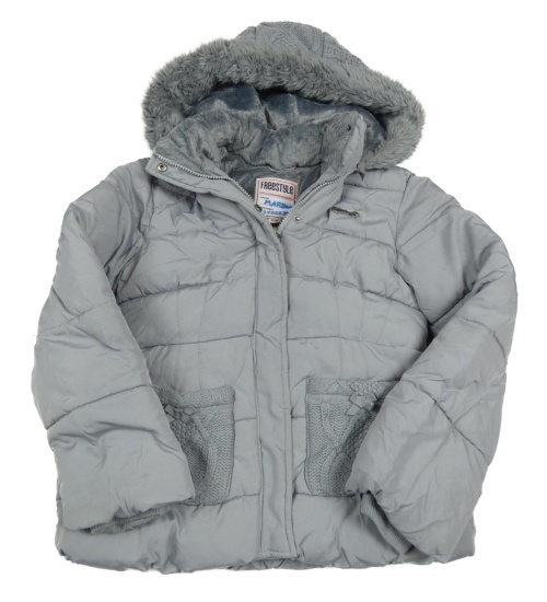 Světlešedá šusťáková zimní bunda s pletenou kapucí
