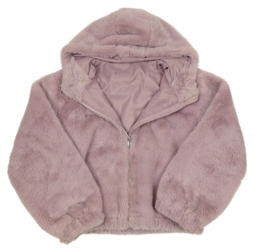 Lila kožešinová podšitá crop bunda s kapucí Tu