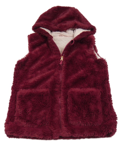 Vínová kožešinová podšitá vesta s kapucí Nutmeg