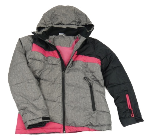 Šedo-černo-růžová šusťáková funkční zimní lyžařská bunda s kapucí Pocopiano