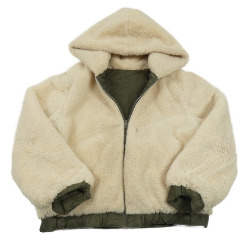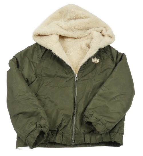 Khaki šusťáková zateplená oboustranná bunda s kapucí