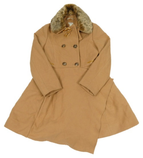 Hnědý flaušový kabát s kožešinovým límcem Monsoon