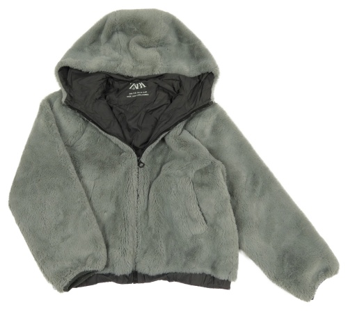 Šedá kožešinová podšitá crop bunda s kapucí Zara