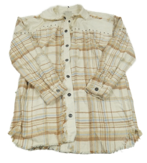 Nové - Smetanovo-béžovo-světlemodrá kostkovaná košilová bunda River Island
