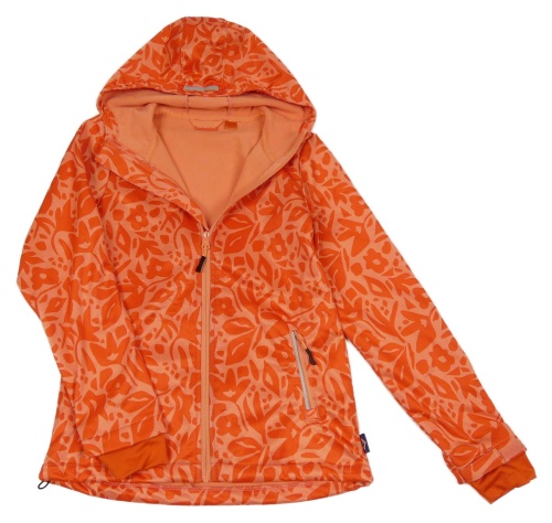 Lososovo-jahodová vzorovaná softshellová bunda s kytičkami a kapucí Rocktrail