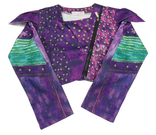 Tmavofialovo-zelený crop křivák s čínskými draky a volánky