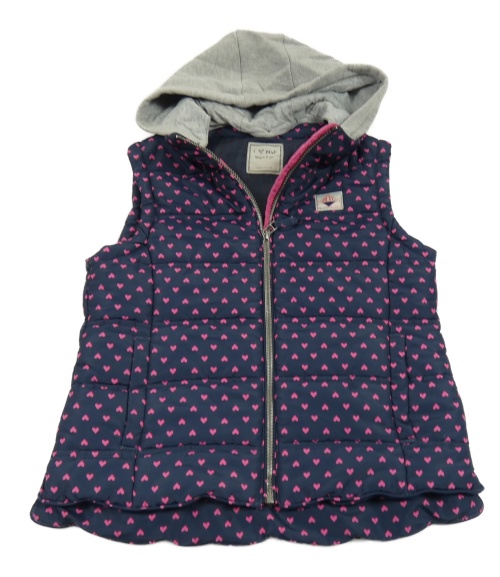 Tmavomdorá šusťáková zateplená vesta se srdíčky a teplákovou kapucí Next