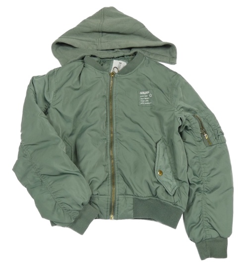 Khaki šusťáková zateplená crop bunda s odepínací kapucí H&M