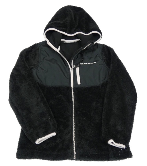 Černá chlupatá bundomikina s logem a kapucí DKNY