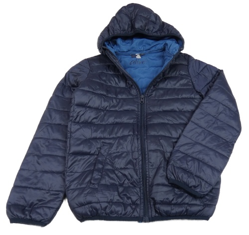 Tmavomodrá šusťáková prošívaná lehká zateplená bunda s kapucí