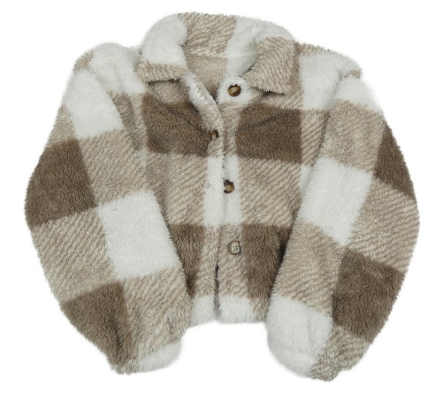 Hnědo-bílá kostkovaná plyšová crop košilová bunda Shein