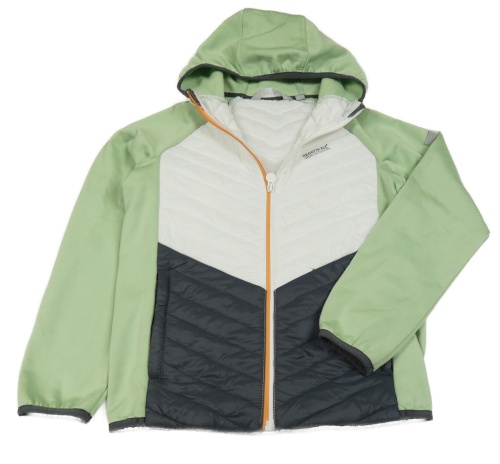 • Světlezeleno-bílo-šedá softshellovo/šusťáková funkční bunda s kapucí Regatta