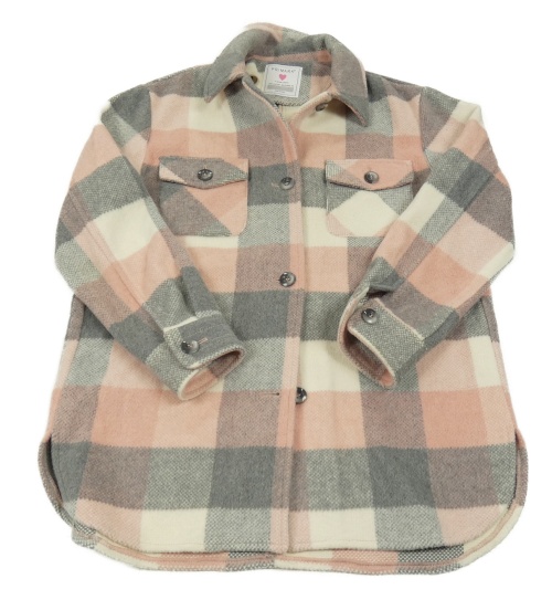 Šedo-smetanovo-růžová kostkovaná vlněná košilová bunda Primark