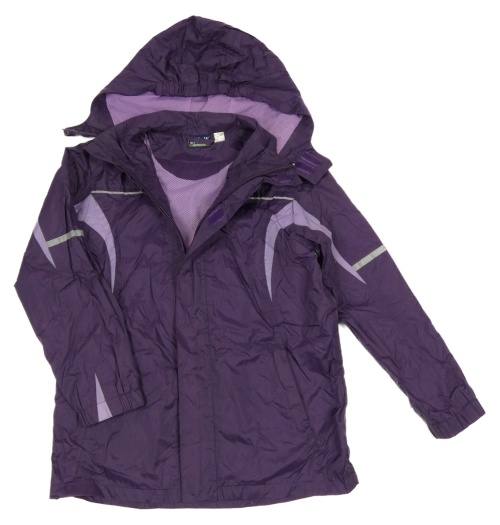 Lilkovo-fialová šusťáková jarní funkční bunda s ukrývací kapucí Crivit