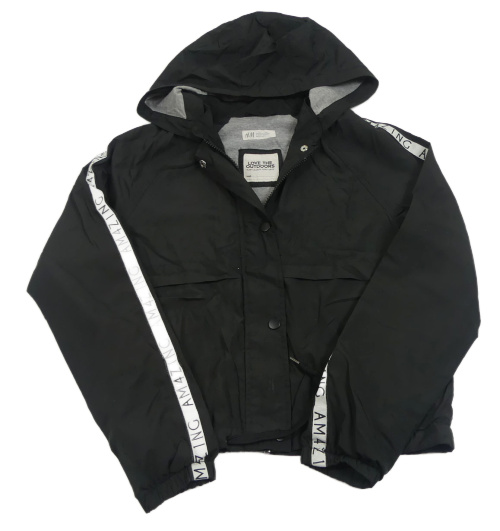 Černá šusťáková podzimní crop bunda s proužkem a kapucí H&M