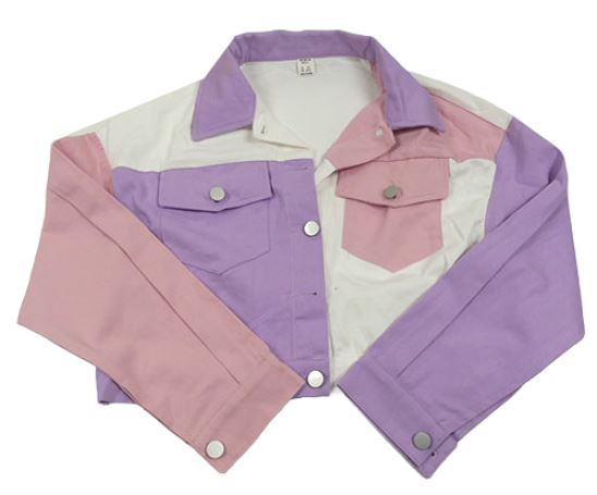 Fialovo-bílo-růžová riflová crop bunda SHEIN