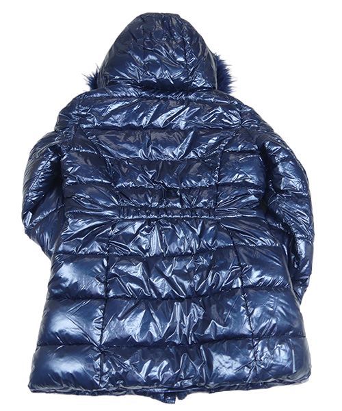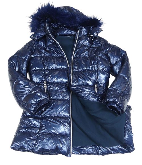 Tmavomodrý lesklý šusťákový zimní kabát s kapucí Studio