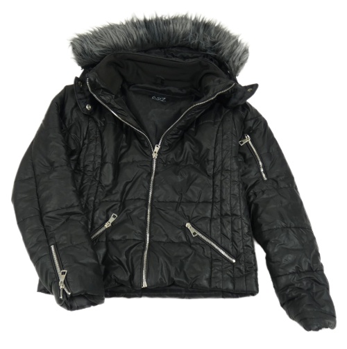 Černá šusťáková zateplená bunda s kapucí s kožešinou
