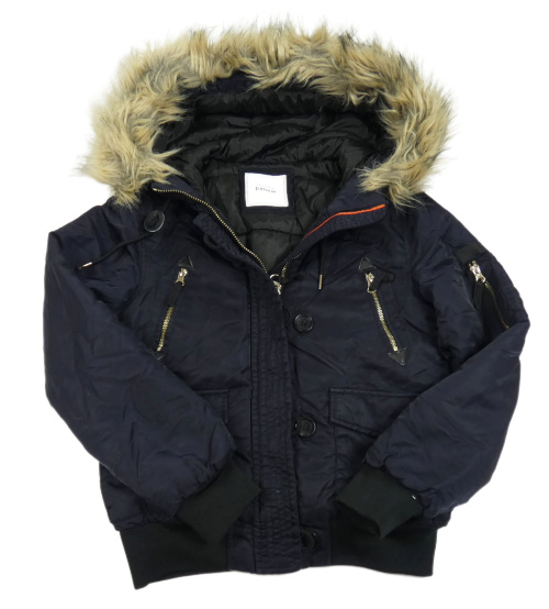 Tmavomodrá šusťáková zimní bunda s kapucí s kožešinou Pimkie