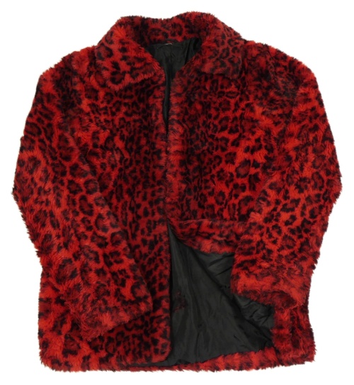 Červená kožešinová podšitá bunda s leopardím vzorem George