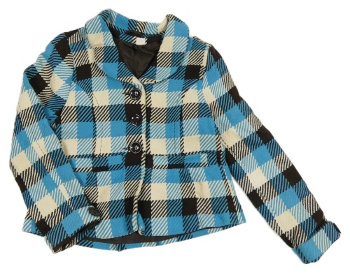 Světlemodro-černo-bílý kostkovaný podšitý kabát
