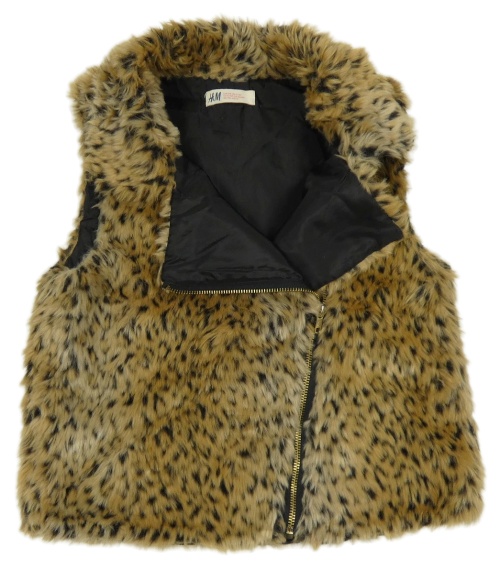 Béžovo-čená kožešinová podšitá crop vesta s leopardím vzorem H&M