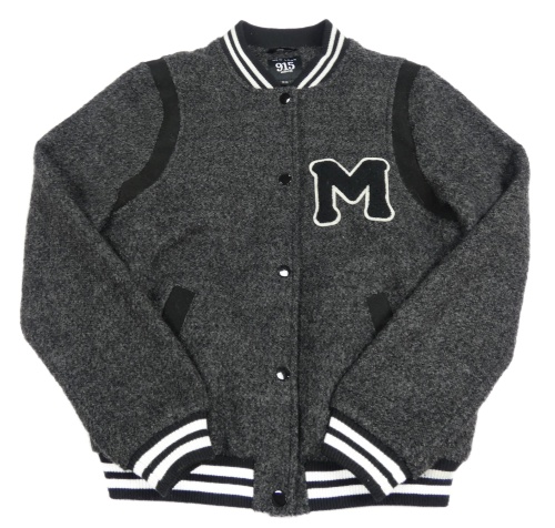 Tmavošedo-černý melírovaný vlněný jarní bomber s písmenkem a pruhy New Look