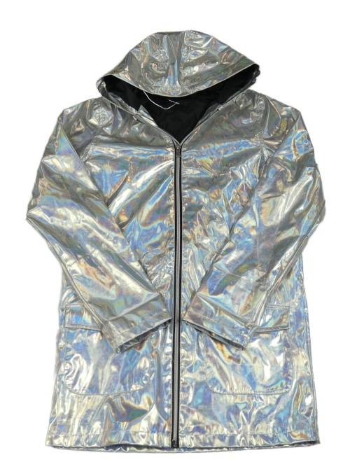 Stříbrný metalický nepromokavý jarní kabát s kapucí