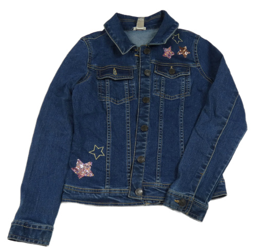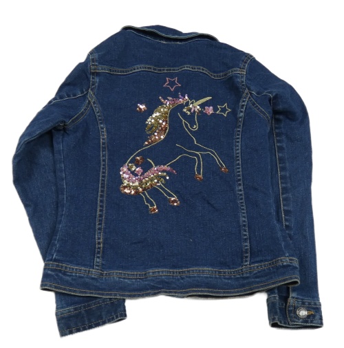 Tmavomodrá riflová bunda s jednorožcem z flitrů Monsoon