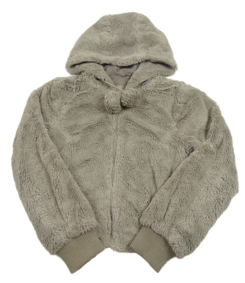 Šedobéžová kožešinová podšitá crop bunda s bambulemi a kapucí New Look