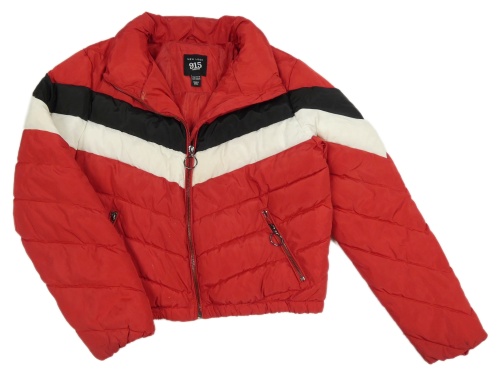 Červeno-černo-bílá šusťáková zimní crop bunda New Look