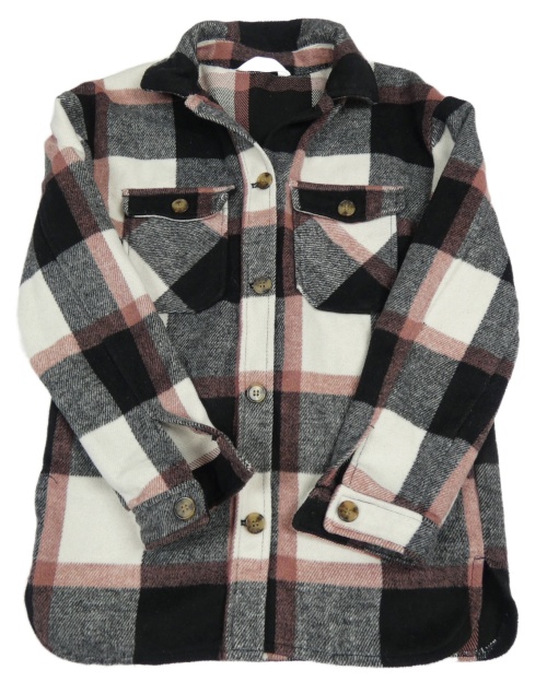 Černo-bílo-růžová kostkovaná vlněná košilová bunda H&M