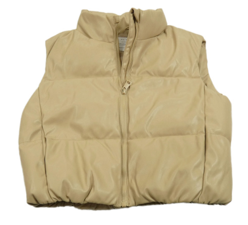 Béžová prošívaná koženková zateplená crop vesta PRIMARK