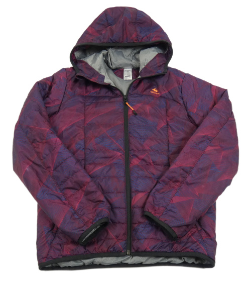 Růžovo-tmavomodrá vzorovaná funkční šusťáková zimní bunda s kapucí , Decathlon