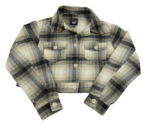 Černo--béžovo-šedá kostkovaná vlněná crop košilová bunda New Look