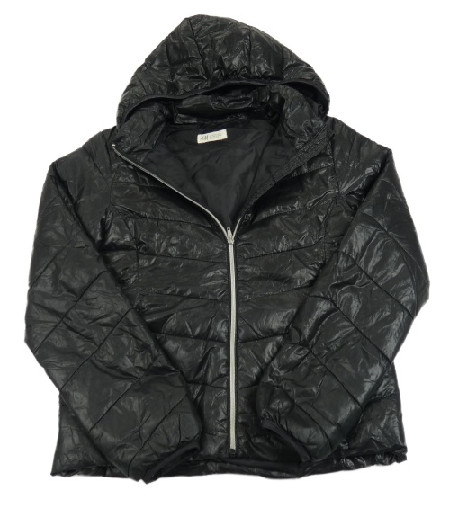 Černá lesklá šusťáková zateplená bunda s kapucí H&M