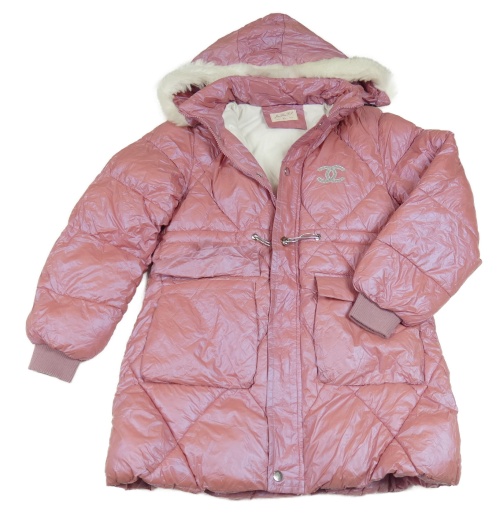Růžová lesklá šusťáková zimní bunda s výšivkou kapucí s kožešinou