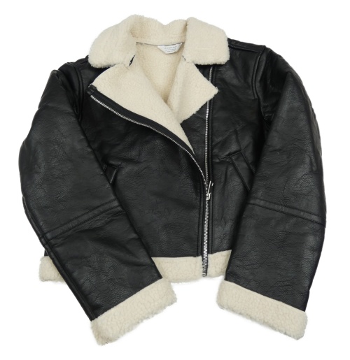 Černý crop zateplený koženkový křivák s huňatým lemem Primark